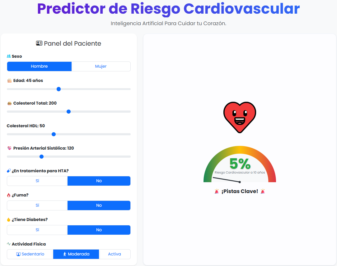 Entre los proyectos más destacados se encuentra el Predictor de Riesgo Cardiovascular, una plataforma web interactiva que permite a médicos y pacientes visualizar cómo sus hábitos inciden en su salud a largo plazo.