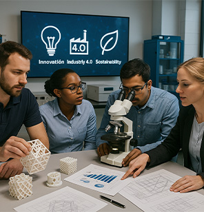 La Maestría en Materiales y Procesos Industriales de la Universidad ECCI se enfoca en la investigación aplicada en materiales para la industria manufacturera, química, extractiva, biomédica y de innovación tecnológica. El programa articula a los estudiantes con proyectos reales en alianza con la industria y el sector académico, brindando acceso a laboratorios especializados. Se promueve la participación en eventos académicos y la producción científica, fortaleciendo el liderazgo en investigación, desarrollo e innovación en los campos de los materiales y procesos industriales.