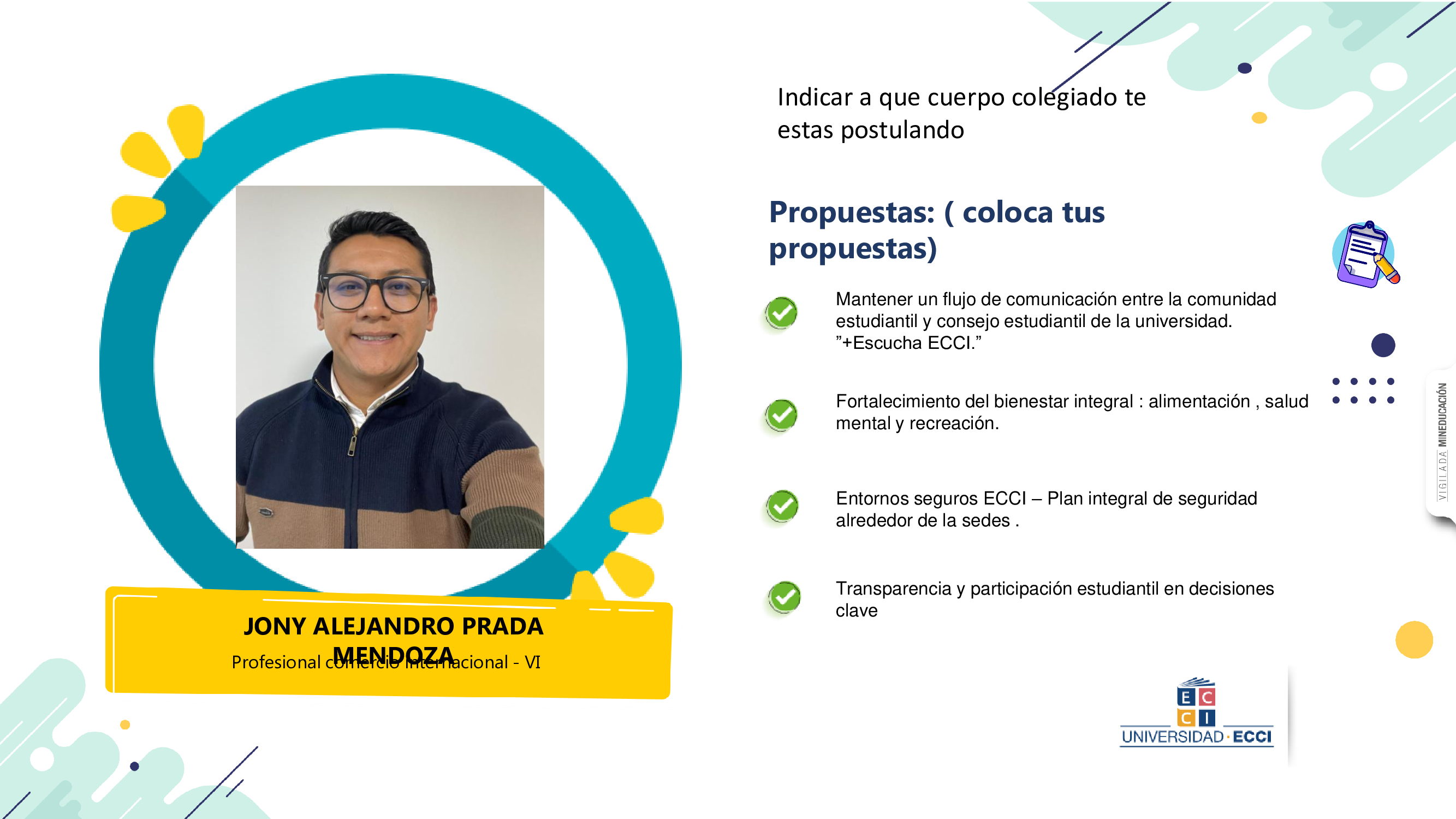 La universidad ECCI tiene el gusto de invitarlos a elegir a sus representantes estudiantiles para los diferentes cuerpos colegiados 2025-2026.